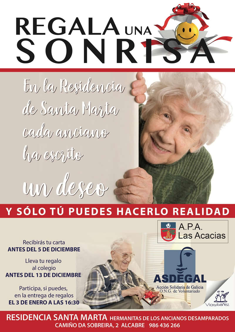 Dentro del programa de voluntariado familiar, hemos recogido las cartas con las peticiones a los Reyes Magos de los abuelos residentes en el Asilo Santa Marta de Vigo y el asilo de Tui. Siendo en total 74 peticiones. Qué fueron repartidas entre familias de las Acacias y del Club Familiar Aboal,, el día 3 de enero en Santa Marta y el 5 en Tui, las familias asistirán a la entrega de los regalos, y durante el año y a partir de ahora estas familias visitarán a su “abuelo” periódicamente.
